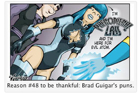 Special thanks to the Webcomic Overlook, which included Evil Inc in its compilation of Webcomics’ Greatest Trivial Moments under the category of Best Pun of the Year. The winning strip was this doozy from a couple months ago.