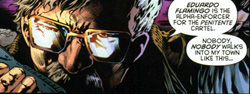 Gordon: Batman. Eduado Flamingo is the aplha-enforcer for the Penitente Cartel. Nobody, nobody walks into my town like this….