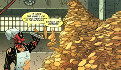 Having been initially turned down by Cyclops for X-Men membership (maybe Baby Wolvie was right), Deadpool prepares for a follow-up meeting by Domino — who is sent to negotiate membership with the mercenary. Of course, Deadpool’s meeting prep consists of making pancakes. 372,844 of them, to be exact.