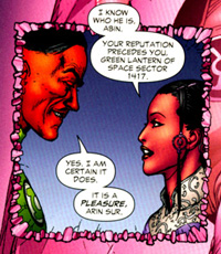 It turns out that the Yellow-Ringed One had a thing for partner, Abin Sur’s kid sister, Arin Sur. And, according to the flashback, it ended very, very badly.