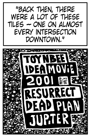 Phables It’s stories like this that make Phables such a stand-out feature. Back in the 80s, a mystery man started cutting enigmatic messages into linoleum tile and then permanently affixed them to the road using asphalt sealer. He’d set them