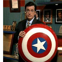 To read Joe Quesada’s letter to Colbert, bequeathing him the shield, and to see a clip from the show, click away.
