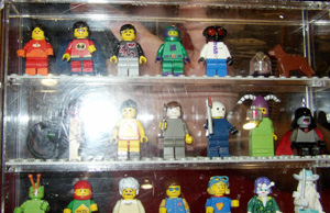 My pal Ryan Archer (right) brought over a T-Shirt from his strip, and David Oakes, who has always surprised me with more Lego versions of the Evil Inc cast at every successive convention he visits, gave me my very own Lego me. You can see it below, third from the left, in a little VILF shirt. Yes, that’s a lego Dr, Haynus on the far right.