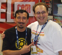 Speaking of Scott Kurtz, he was staying at the Marriot next to the convention center. Take a look at what was plastered all over the facade. It seems the newest DC animated series is a take-off of the Brave and the Bold series that teamed Batman up with another DC character each month. And just look who was being promoted. My favorite hero of all time, Plastic Man. He was even on the fans that DC handed out. In fact, put Plastic Man And San Diego into a Flickr search and you’ll see not one, but two people cosplaying the ductile doofus at Comic Con this year.