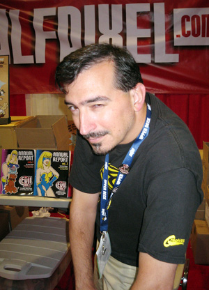I also got a chance to reconnect with Ryan Sohmer and Lar Desouza, the creative team behind Least I Could Do. It’s always great to see those guys, and they were swamped at their booth for most of the week, promoting Blind Ferret, LICD and Looking For Group. Lar joins us in being a huge fan and supporter of Evil Inc colorist Ed Ryzowski.