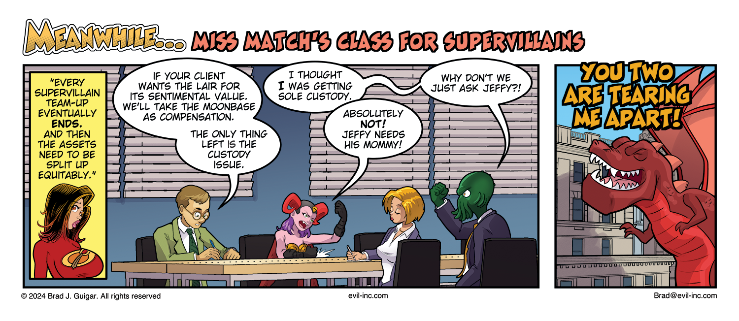 Let’s pause quickly to see what’s happening elsewhere in the Evil Inc universe.