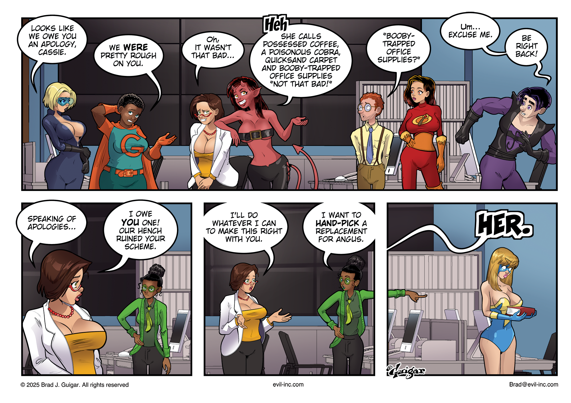 Cassie Cruz: Speaking of apologies... I owe you one! Our hench ruined your scheme.