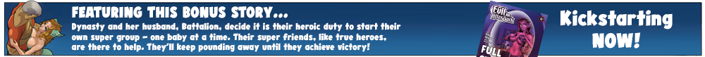 (Angus kisses Lightning Lady as she wraps her arms and legs around him.)