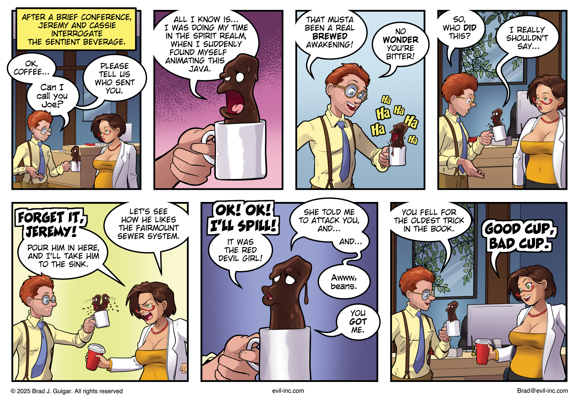 Sentient Coffee: "OK! OK! I’LL SPILL! It was the Red Devil Girl!"