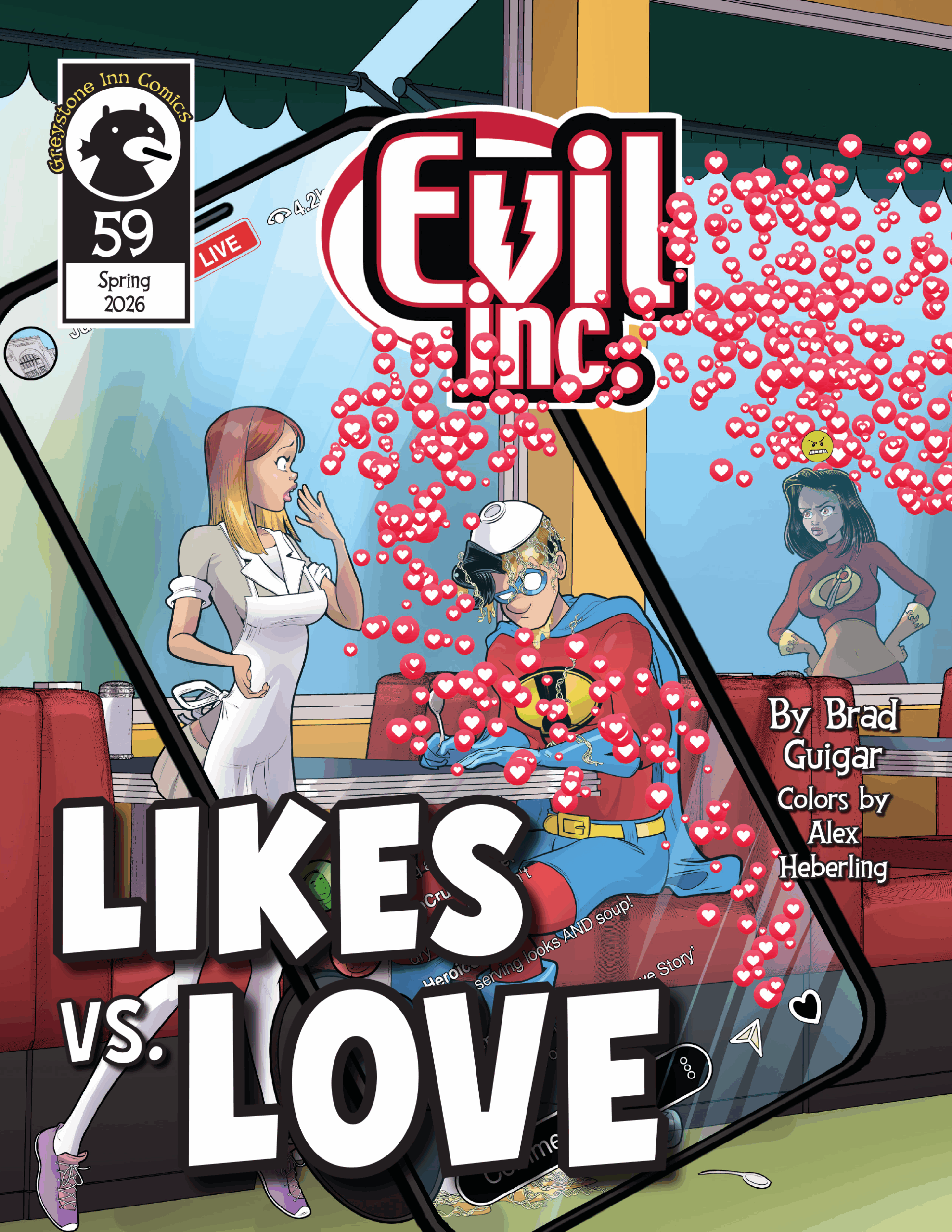 The next chapter of Evil Inc — Likes vs Love — premiers now! It’s a major turning point: Captain Heroic and Miss Match hit their first true relationship test, Dr. Muskiday unveils a breakthrough that shakes the entire Fairmount branch, and the seeds of our next long arc begin to sprout.