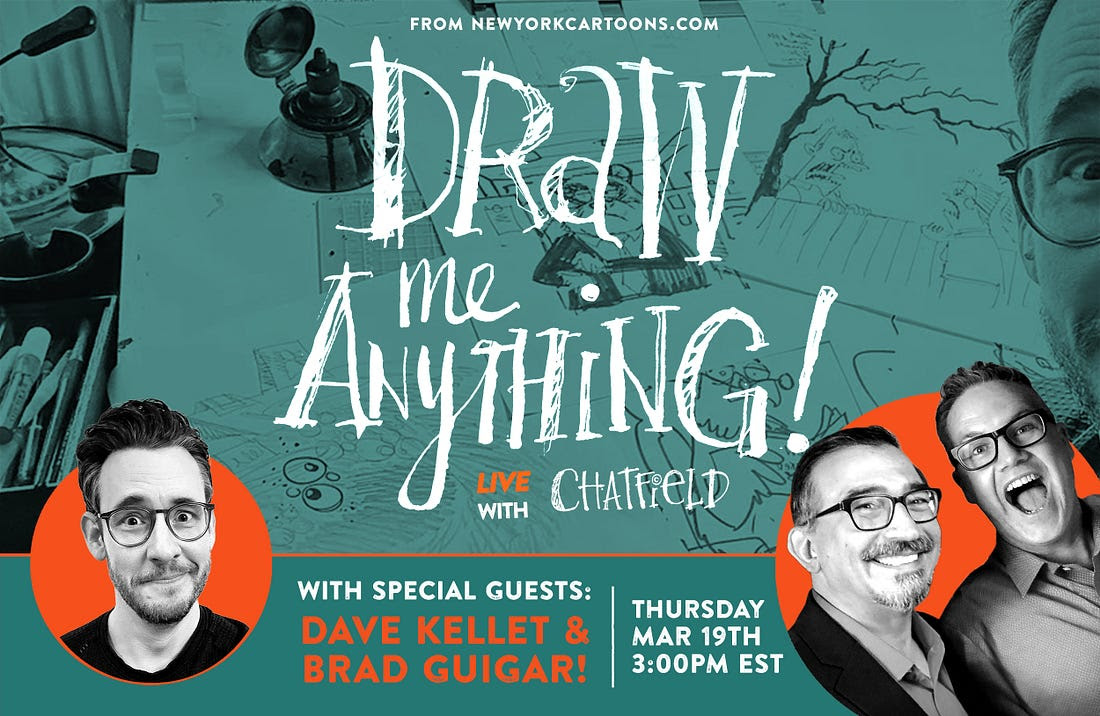This is going to be so much fun! Dave Kellett and I will be Drawing Anything with our friend Jason Chatfield at 3 p.m. eastern time today. Join us!