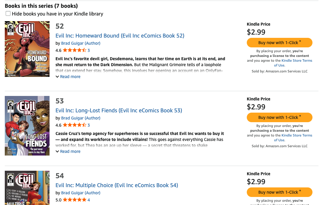 This week we also expanded the Kindle catalog: Evil Inc eComics #52–58 are now live on Amazon with panel-by-panel Guided View reading. It’s a fantastic way for new readers to binge your favorite chapters.