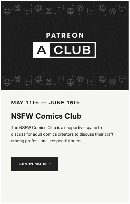 I've been saying that the NSFW-comics community is badly in need of mentorship for a long time. So when the opportunity arose to host a six-week session for Patreon, I jumped at it.