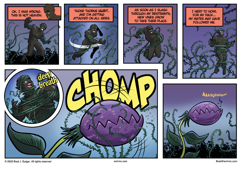 But before he can howl, he is engulfed by a giant Venus Flytrap.