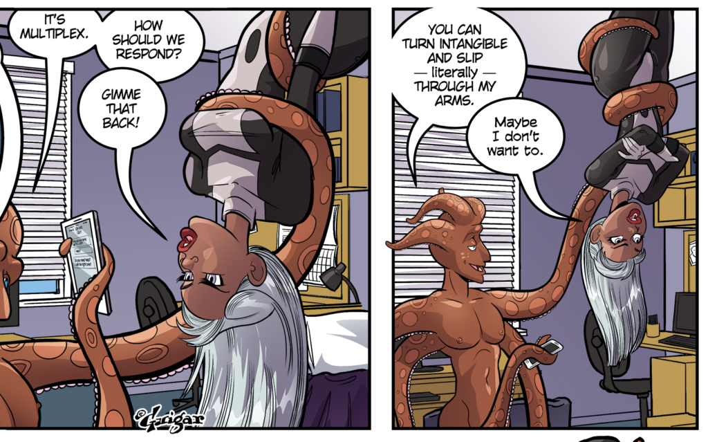 Out of curiosity, I totaled up everything that I posted online last year (not including social media). As it turns out, if you're not joining us on Patreon, you're missing out on a whopping 85% of what I'm posting! That includes free eBooks, commissioned illustrations, bonus comics and Cape Carnival cartoons — as well as NSFW content like Evil Inc After Dark, Courting Disaster, commissions and sketches. In fact, I just found out that the monthly reward package I send out to my $10+ patrons has topped 2 gigabytes of content!