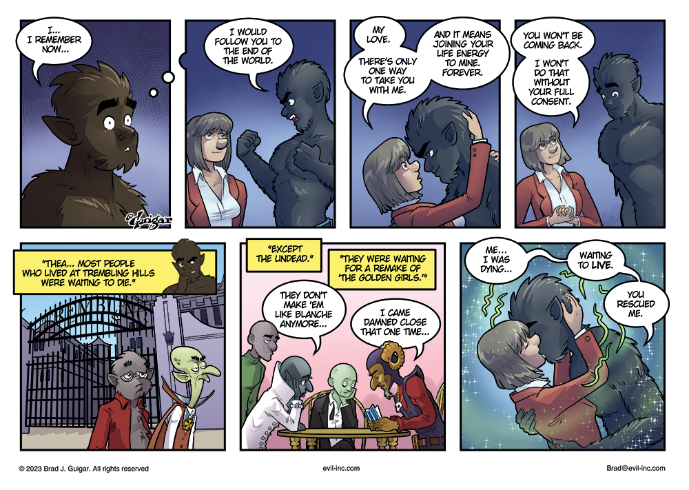 This extravaganza features some of Desdemona's best appearances in both Evil Inc After Dark and commissioned illustrations. That includes the recent storyline featuring her and her two suitors, Iron Dragon and Surgat the Deshrouder Demon.