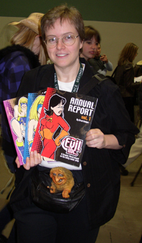 So the next day came a little earlier than we were prepared for, but I think our excitement carried us through the morning. Saturday was non-stop action. The Halfpixel booth was buzzing from opening to close. The response to the HTMW book was truly gratifying. I was also happy to see many people buying all three volumes of the Evil Inc Annual Report.