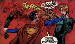 In Tales from the Sinestro Corps: Superboy Prime #1, SP finishes the job he started on the Teen Titans’ Risk in Infinite Crisis — ripping off Risk’s remaining arm at the shoulder.
