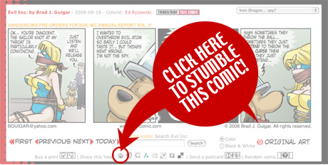 Secondly, it made me realize that, perhaps, I should point out the StumbleUpon icon beneath each daily strip that will help you Stumble your favorite Evil Inc strip for your friends. That way everyone knows they can Stumble Evil Inc