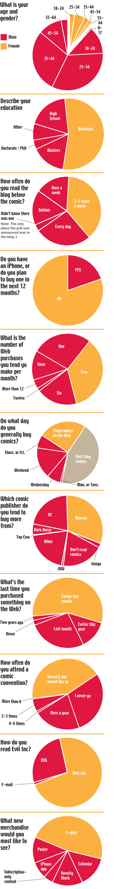 Statistically speaking, the average Evil Inc reader is a male Marvel fan between the ages of 25 and 34 with a Bachelor’s degree, who reads the Evil Inc blog two-or-three times a week, doesn’t own an iPhone and desperately wants to see Evil Inc T-shirts.