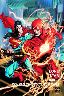 They say: At last, the answer to the question that’s plagued DC fans for decades: Who’s faster, Superman or The Flash? Call your bookie and bet the farm, because you’ve never seen a run like this – and if speedsters keep dying at the pace they’re going, you might never see another one again!