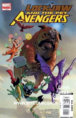 They say: And there came a day, a day unlike any other, when Earth’s mightiest heroes were unaware of a threat greater than all of them could handle. And on that day, a teleporting puppy scoured the world to assemble a team of animals to fight the foes no single beast could withstand! Strap on your collar and hop on-board the adventures of Lockjaw, Lockheed, Redwing, Hairball, and an all-new Frog Thor!