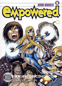 I say: Mature Readers only. Between the art and the deceptively sensitive writing, this is perhaps one of the most unique and brilliant super-hero books on the stands. I know… I know… it’s heavy on the cheesecake. It’s also heavy on a realistic and surprisingly functional relationship between Empowered and Thugboy. You’ll pick up this book for the cheesecake. You search out volumes one-through-four for the story. Warren is just that good.