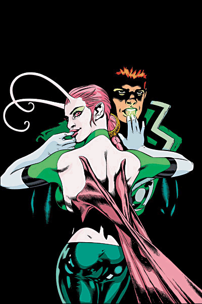There are sparks between her and Guy Gardner — she lays a serious lip-lock on him about six pages in. She’s drawn to be very sexy — with serious attention paid to her secondary-sex characteristics — and she’s written with a very definite sweetness.