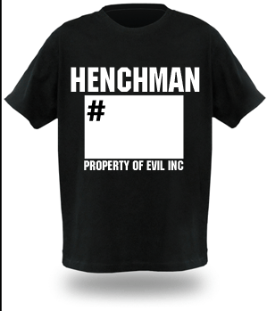 I’d like to do another T-shirt run sometime in the near future (maybe even in time for Baltimore Comic Con). And I’ve had this idea in my head since Wizard World Philly. Here’s the concept: It’s a black, cotton T-shirt that says “Henchman,” and underneath, there’s a “#” inside a big white box.