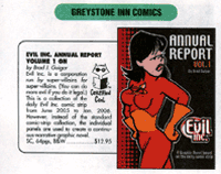 In case you missed the first post, I’m asking all henchmen, goons, thugs, and minions to go to their comic shops and bookstores and ask for the Evil Inc Annual Report Vol 1 by name. It’s on Page 281 of the January Previews, order code: JAN073651.