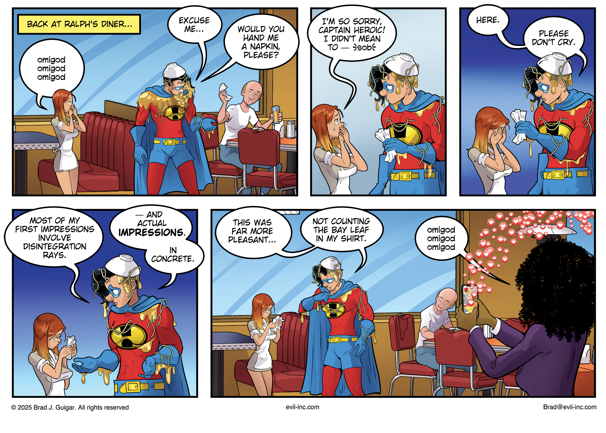 Meanwhile, back at the Evil Inc comic strip, I announced a Tuesday-Thursday schedule over the summer to accommodate this transition. But as the months went on — and the scope of what I was doing continued to change — it became clear that it was going to be harder and harder to justify the amount of time that going back to five-days-a-week was going to entail.