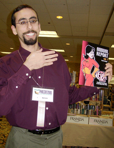 PhilCon was my last convention appearance of the year and I can definitely say I went out on a high note. As you may remember from an earlier post, I was a little hesitant about this convention. However, once I got there, I realized that I had lucked into a very nice convention thrown by excellent people. One of the organizers even came over to make sure I didn’t have any hard feelings about their guest policy. One of the many people who came up to say hello and peruse through the books was Mark Sachs (above, right) who illustrates A Miracle of Science.