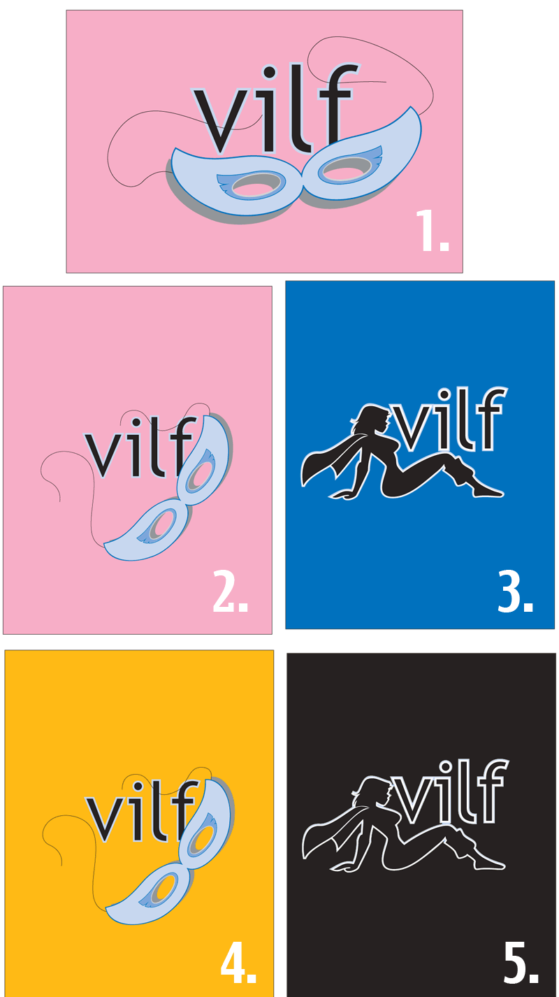 VILF Shirt, Part TwoHere are some more variations — along with some different color combinations. Click on the image to see it larger. Any thoughts?