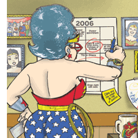 The Philadelphia Daily News has an excellent package on Wonder Woman today. It talks about how her mythos has lasted sixty-five years and previews the new WW book as well. It also features an illustration by Yours Truly, so if you’re in the circulation area, pick up a copy. 🙂 Click on the thumb on the right for a better look.